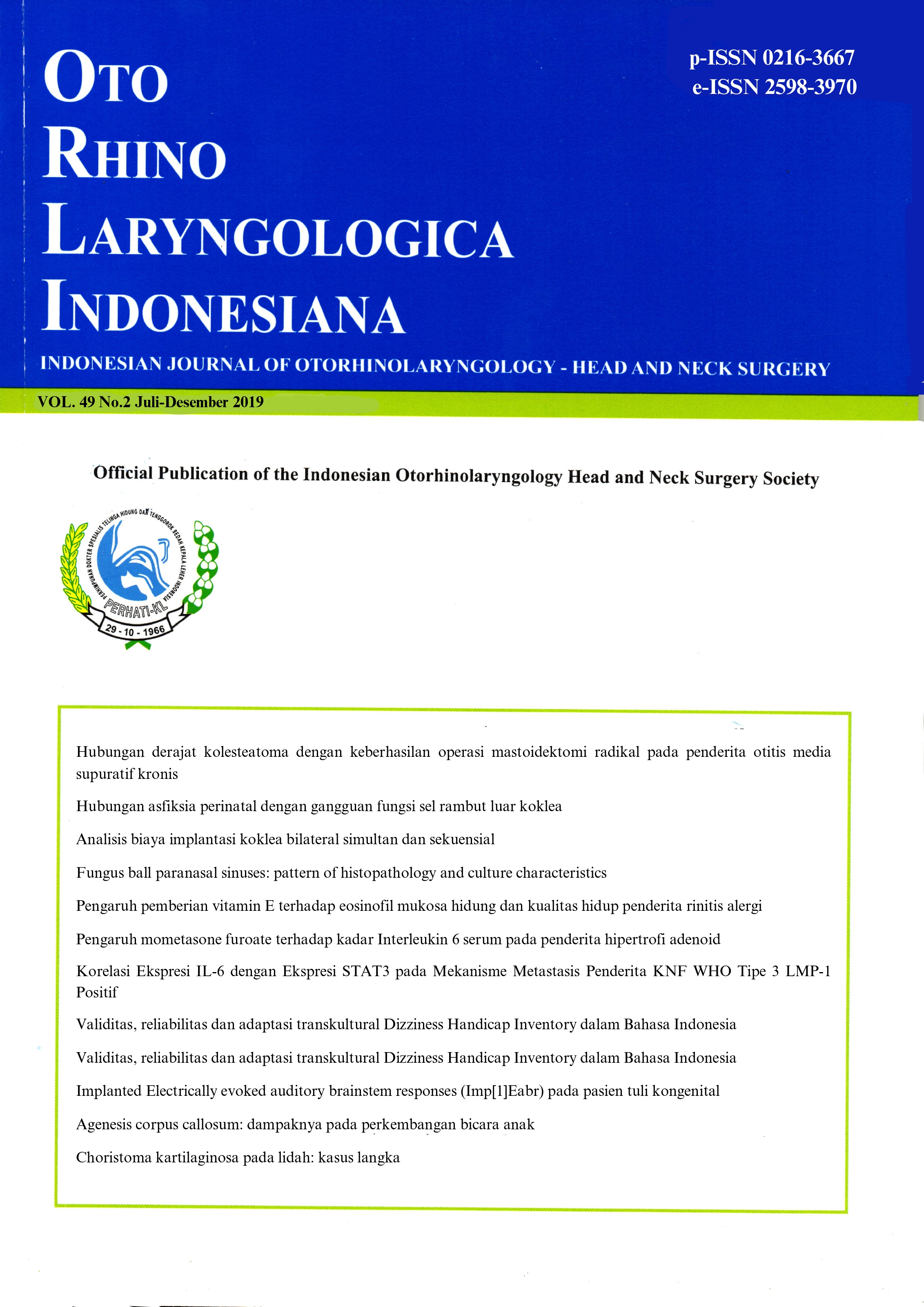 Latar belakang: Corpus callosum (CC) merupakan jalur utama yang menghubungkan hemisfer cerebral. Fungsinya adalah mentransfer informasi dari satu hemifer ke hemisfer lainnya dengan menyediakan sarana untuk mengintegrasi informasi dari setiap hemisfer untuk menerima, memahami dan bertindak sepenuhnya atas masukan sensori termasuk auditori yang berdampak pada proses perkembangan bicara. Tujuan: Mengetahui adakah gangguan pendengaran dan proses perkembangan bicara pada anak sebagai Agenesis Corpus Callosum (AgCC) serta penanganannya. Laporan kasus: Dilaporkan dua kasus yang terdiagnosis sebagai agenesis corpus callosum dan dirujuk untuk mengetahui adakah gangguan pendengaran yang diperkirakan akan berdampak pada perkembangan bicara. Pada kasus pertama terdapat Otitis Media Efusi bilateral dengan adanya keterlambatan bicara dan motorik, sedangkan kasus kedua tidak ditemukan adanya gangguan pendengaran. Metode: Berdasarkan telaah literatur berbasis bukti melalui Pubmed, Science Direct, Springer Link, Clinical Key dengan kata kunci agenesis corpus callosum, pemeriksaan pendengaran, gangguan bicara diperoleh 161 literatur. Skrining dilakukan dan diperoleh 12 literatur yang relevan. Pemilihan jurnal 5 tahun terakhir dengan memasukkan kata kunci maka diperoleh 2 jurnal yang sesuai. Kesimpulan: Penegakan diagnosis agenesis CC sering luput karena gejala yang ditimbulkan tidak khas, sehingga kebanyakan kasus baru terdiagnosis bila ada riwayat kejang yang perlu dicari etiologinya, atau adanya dugaan hidrosefalus. Gangguan pendengaran tidak selalu terjadi tetapi permasalahan yang utama adalah tidak terjadinya integrasi informasi sensorik antar hemisfer yang memengaruhi perkembangan bicara. Oleh karena itu kedua kasus tersebut perlu dievaluasi lanjut. Penanganan kasus agenesis CC bervariasi tergantung kelainan yang dialami.